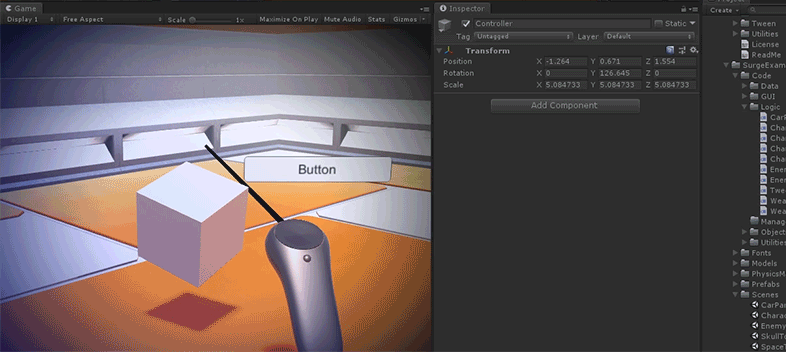 Collider Button hooks right into Surge's Chooser system to allow for simple "flashlight" and "pointer" solutions commonly found in Mixed Reality and Virtual Reality.