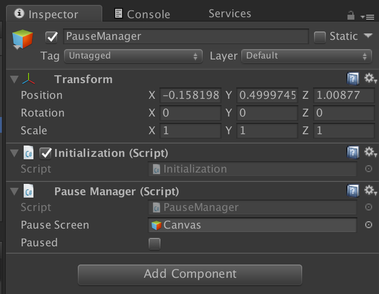After you create a singleton and place it onto a GameObject in your project it will automatically register and initialzie itself at runtime. You will notice an “Initialialization” component will be added to the GameObject as well, this component ensures that a singleton is “ready to go” before anything else in your game so you will never get an error when calling for a singletone that is in your scene.